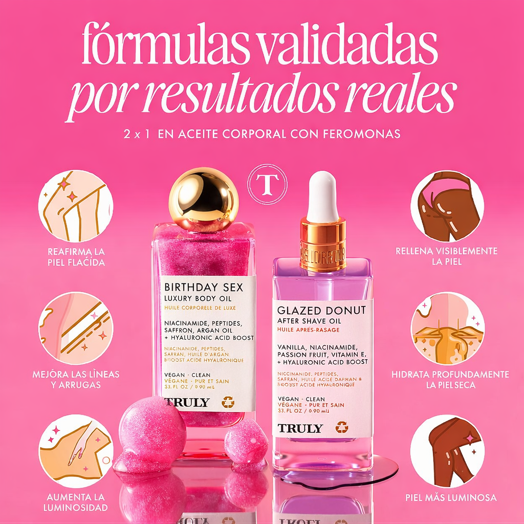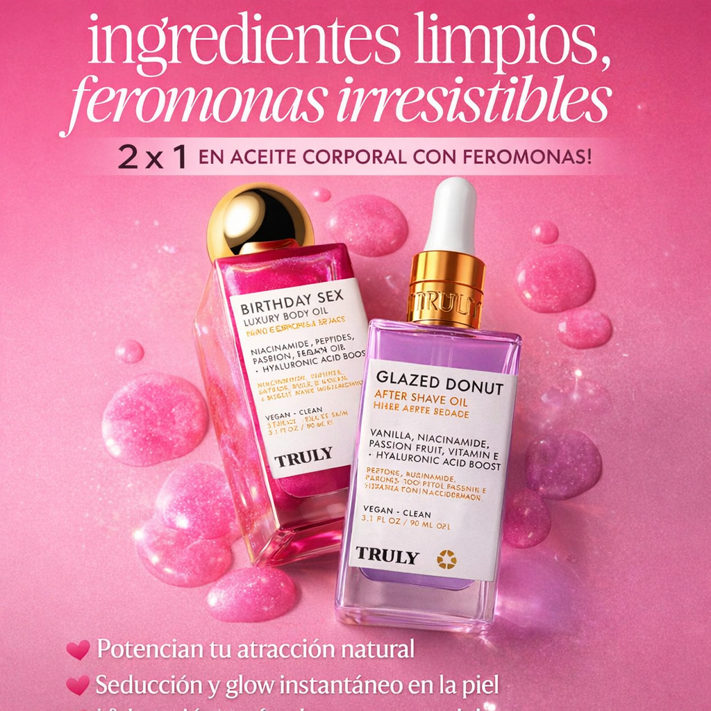 Descubrí el combo perfecto para transformar tu rutina corporal. Este 2x1 combina un aceite corporal con feromonas que potencia tu presencia y un aftershower hidratante que deja la piel suave, luminosa y con aroma dulce irresistible.